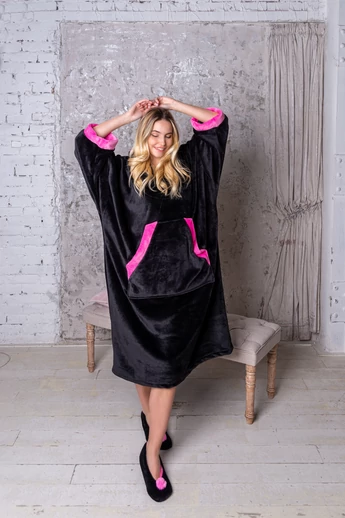POPPY 23. HOODIE FEKETE-PINK KAPUCNIS TAKARÓ