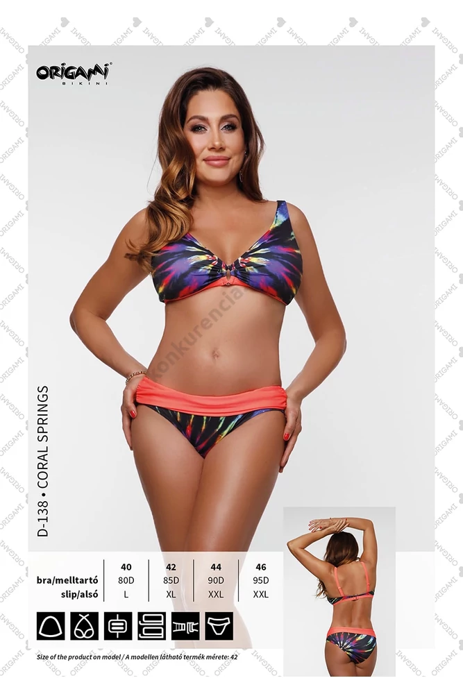 Az Origami fürdoruhákat az egyedi tervezése és designja teszi igazán különlegessé! Minden évben izgalmas és különleges kollekcióval lepnek meg minket! A fiatalok és idosebbek is egyaránt megtalálhatják a számukra legmegfelelobb darabot. Az alábbi típus D kosaras, kiveheto szivacsbetéttel, nyakba is kötheto vállpánttal. Hátul 3 hosszba beakasztható kivitel. A bugyija magasított, teli fazonú. Anyaga