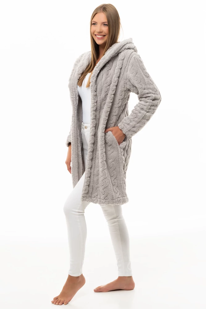 A POPPY BORKA KABÁT puha, csavart wellsoft anyagból készült, amely kényelmes meleget biztosít a huvösebb napokon. Hosszított, karcsúsított fazonú, praktikus kapucnival és zsebekkel ellátva. Kezelési útmutató: 30°C-on semleges, kímélo módszerrel, más textíliától elkülönítve, kifordítva mosható. Klórozni tilos! Foltok helyi tisztítása tilos! Áztatni tilos! Vasalható.