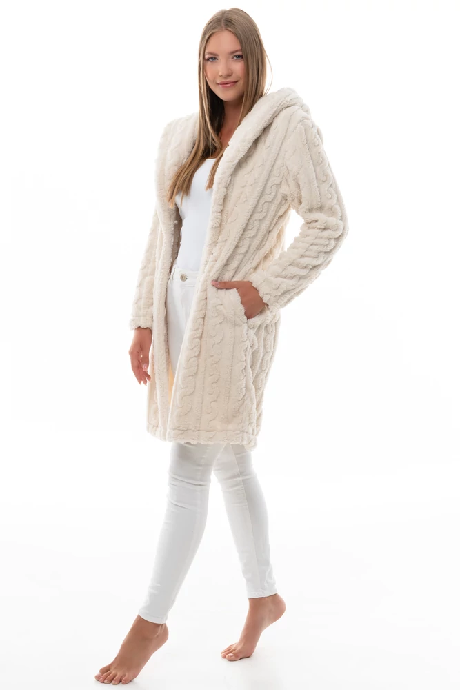 A POPPY BORKA KABÁT puha, csavart wellsoft anyagból készült, amely kényelmes meleget biztosít a huvösebb napokon. Hosszított, karcsúsított fazonú, praktikus kapucnival és zsebekkel ellátva. Kezelési útmutató: 30°C-on semleges, kímélo módszerrel, más textíliától elkülönítve, kifordítva mosható. Klórozni tilos! Foltok helyi tisztítása tilos! Áztatni tilos! Vasalható.